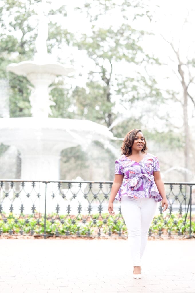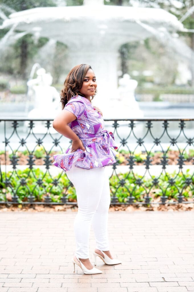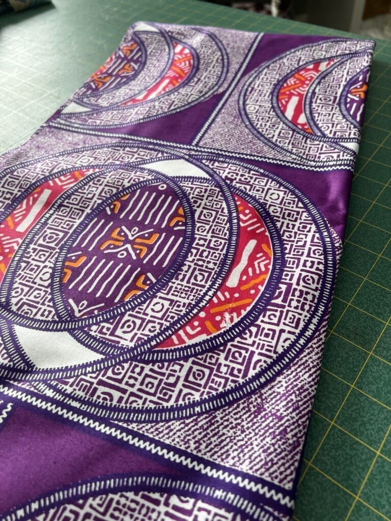I chose this purple Ankara from Vlisco fabrics. It was leftover from a project I did with my daughter; you might recognize it here (pattern Simplicity 1290).