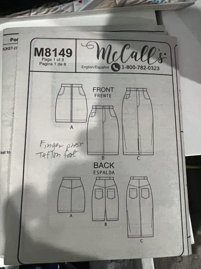 McCalls 8149 is a skirt with three views. Its sleek and form-fitting design hugs your curves in all the right places, accentuating your femininity and highlighting your confident personality. Whether for a casual day look or a glamorous evening ensemble, McCall’s 8149 Skirt effortlessly takes your outfit to the next level. Simple but a beauty, we have three differently designed skirts and views. Potentially a five-pocket stunner, this skirt is ready for all your fun adventures. Also, there are two skirt lengths, which helps petite sewists like myself. The back of the skirt can be made with or without pockets.