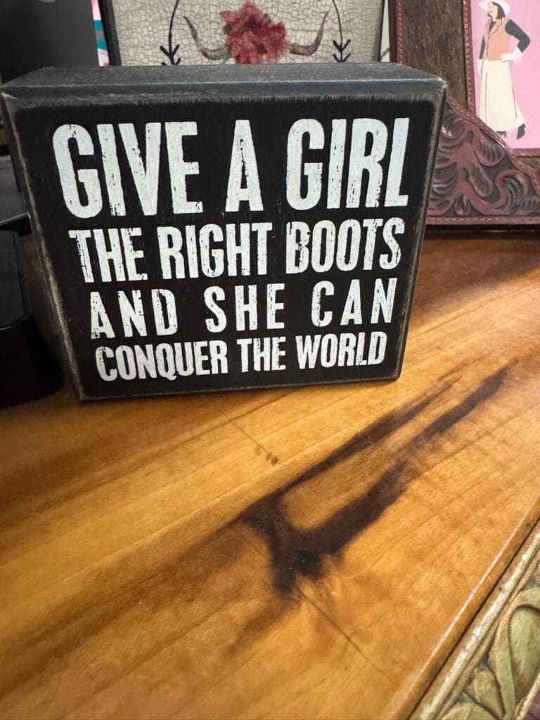 As a person who sews and values details, precision, accuracy, and sheer sewing perfection, I exhaled. My husband, who was determined to return home with a cowgirl, said, “Try them on”. The clerk returned with my size and I placed in my foot in the most lovely shoe. Now since this was my 8th or 9th try on I will tell lyou what every clerk told me a. Itried on boots.