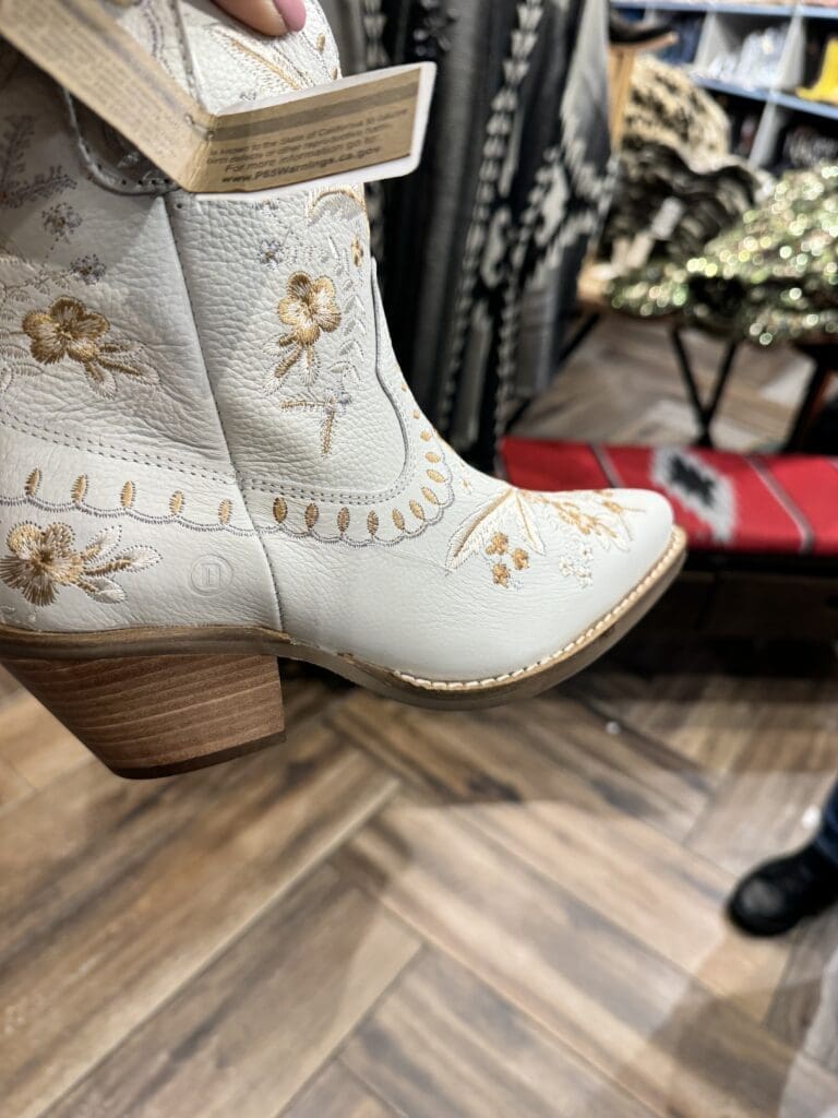 - 2) Look for a color or pattern that makes your heart pitter-patter. As you can imagine, boots, not just boots in Nashville, come in all sorts of patterns – floral, festive, geometric, metallic, suede, embroidered,, etc. The stitching can be quite intricate or plain.