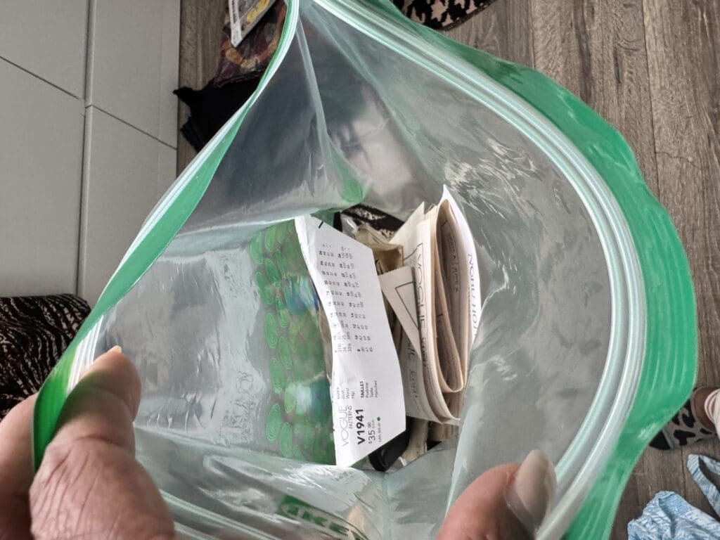 This is the most obvious but most important benefit. How many times have you returned to a project only to realize you can’t find the facing piece, the pocket lining, or the instructions? With this method, the pattern pieces, instructions, fabric, lining, interfacing, thread, zipper, and buttons for a single project all live together in one dedicated bag. When inspiration strikes to finish that project, you just grab the bag and go. There’s no hunting, no second-guessing, and zero chance of a crucial piece going missing.