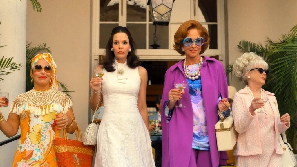 Maybe it was the costuming, but I fell head over heels for the new Apple+ Emmy-nominated show, Palm Royale. Set in 1969, it’s every sewist’s dream on screen. The outfits, complete with brassy golden hairdos, fros, and flips, pulled me right into the big screen courtesy of Designer Alix Friedberg. Palm Royale fashion had me digging into my closet and pattern stash for any throwback look I could find.
