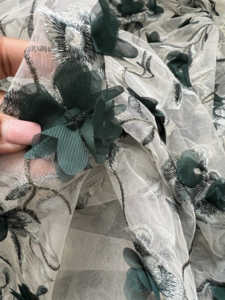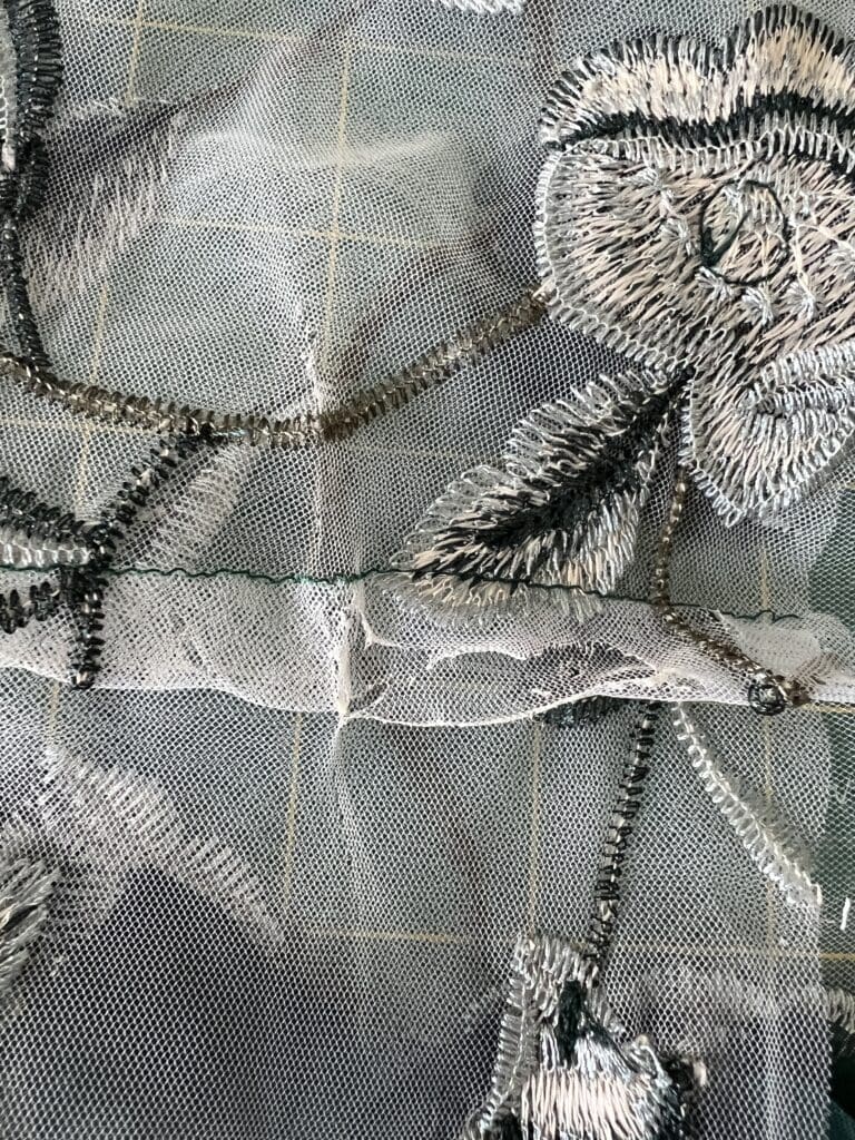 - Prep the fabric. I had to trim away quite a few of my precious green flowers. The prep is similar to the one I advise in the sequins article.