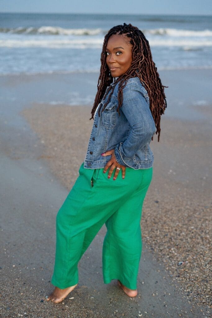 I wanted to choose a printed fabric, but since I picked up this Kelly Green linen fabric in Paris somewhere, I thought it would make a beautiful pair of pants. Very rarely do I sew with solid fabrics. In fact, most of my wardrobe (especially) tops and dresses are printed. For some reason, I own a ton of solid white and solid black dresses. Prints are just fun, so maybe next time when I sew Simplicity 9235, I will use a printed fabric. And you know Ankara is already an option.